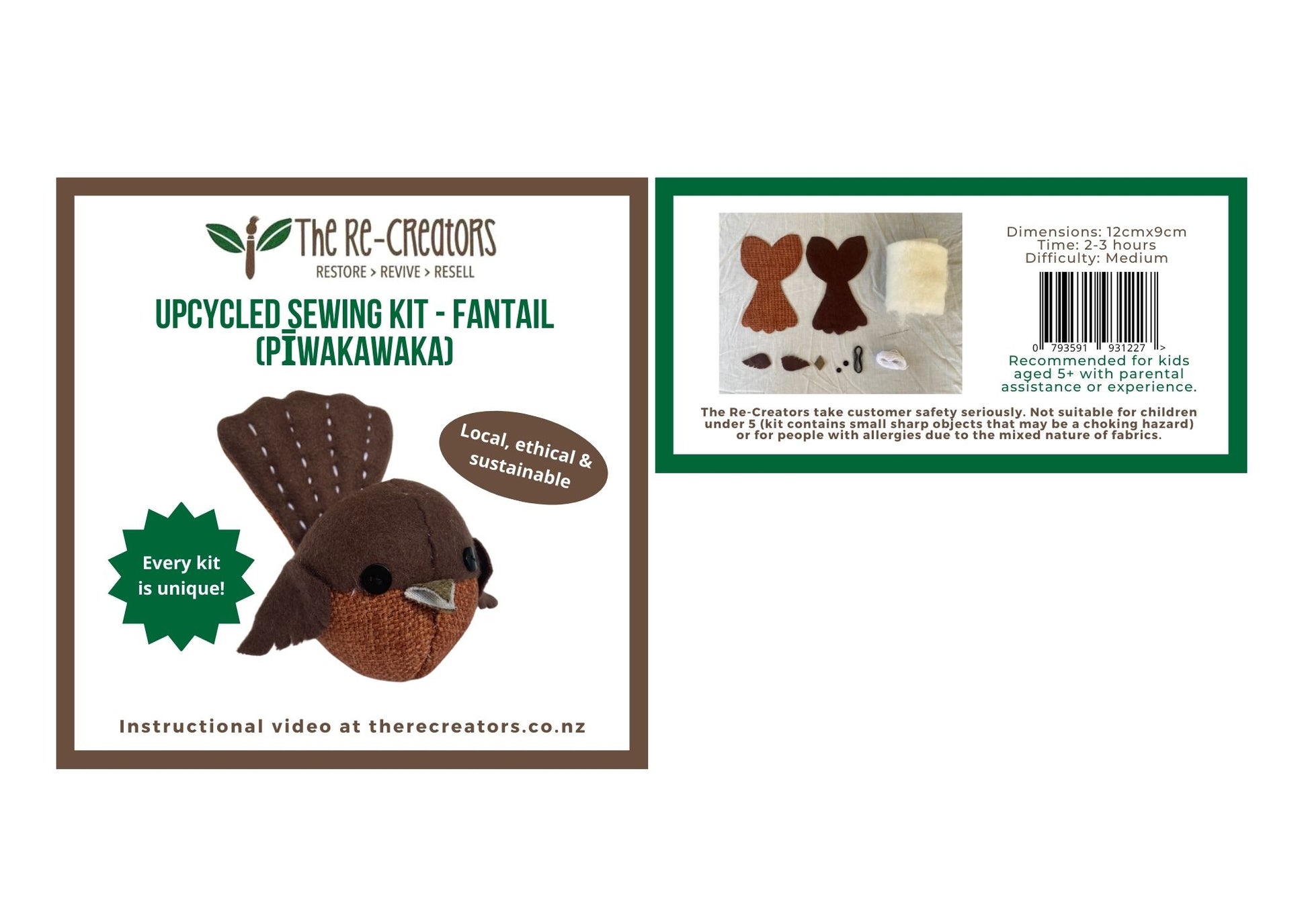 DIY Upcycle Pīwakawaka Toy Sewing Kit